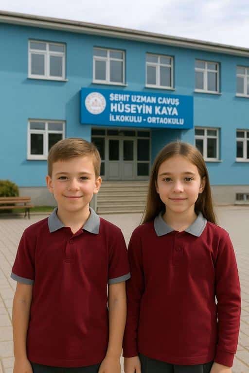 Okulumuz kıyafetleri aşağıda belirtilen görseldeki gibi ilkokul ve ortaokul öğrencilerimiz için üst giyim olarak bordo renk yakalı t-shirt, alt giyim olarak ise siyah pantolon olarak belirlenmiştir.