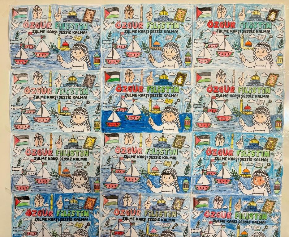 Okulumuzda, Filistin’de yaşanan insani dram ve çocukların maruz kaldığı zorluklara dikkat çekmek amacıyla “Filistin Farkındalık Etkinliği” gerçekleştirildi. Öğrencilerimize, Filistin’deki durum hakkında bilgilendirici videolar izletilerek farkındalık kazandırıldı. Etkinlik kapsamında yapılan çalışmalarla, öğrencilerimizin empati duygularının gelişmesi ve dünya üzerinde yaşanan olaylara karşı daha duyarlı bireyler olmaları hedeflendi.